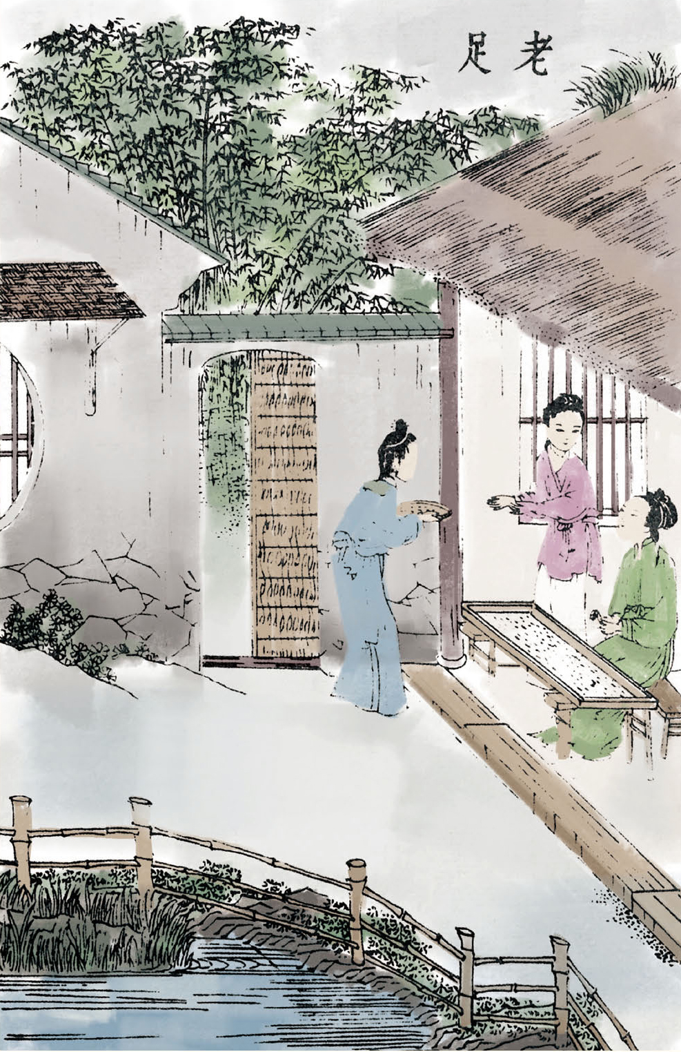 蚕结茧3天之后,就可以拿下蚕箔取茧了。蚕茧壳外面的浮丝叫“丝匡”(茧衣),湖州的老年妇女用很便宜的价钱买回去(每公斤约200文钱),用铜钱坠子做纺锤,打线,织成湖绸。剥掉浮丝以后的蚕茧,必须摊在大盘里,放在架子上,准备缫丝或者造丝绵。如果用橱柜、箱子装起来,就会因湿气郁结疏解不良而造成断丝。