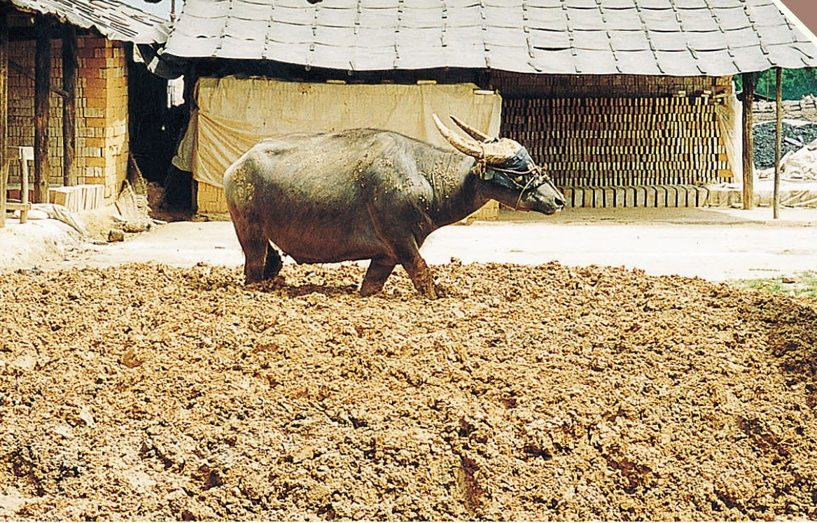 炼泥造砖,也要挖取地下的黏土,以黏而不散、土质细而没有沙的最为适宜。先要用水浸润泥土,再赶几头牛踩成稠泥,然后将稠泥填入木模子,用铁线刮平表面,脱下模子就成砖坯了。