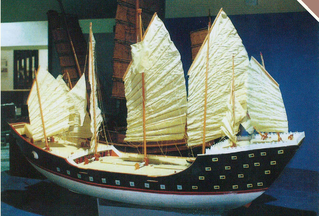 明代郑和下西洋所用的宝船:大船长44丈4尺(约150米),阔18丈(约60米);中船长37丈(约123米),阔15丈(约50米)。可见宝船的体形是很大的。宝船上的桅、帆数量很多。正是有了这种体形巨大、动力优良、坚固安全的船舶,加上高超的航海技术,郑和才能完成空前的远洋航行壮举