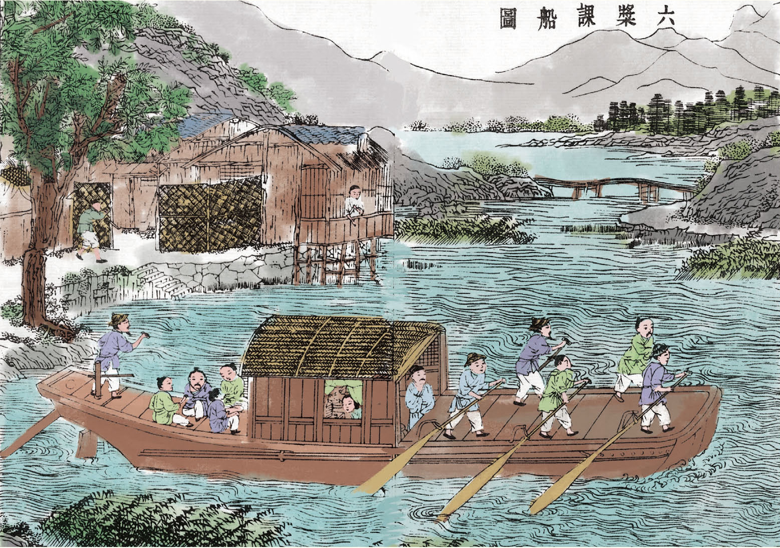 从浙江西部至江苏苏州之间纵横350公里,布满深沟和迂回曲折的小河,这一带的浪船(最小的叫作塘船)数以十万计。旅客无论贫富都搭乘这种船往来,以代替车马或者步行。这种船即使很小也要装配上窗户、厅房,木料多是杉木。人和货物在船里要保持两边平衡,否则浪船就会倾斜,因此这种船俗称“天平船”。浪船的推动力全靠船尾那根粗大的橹,由两三个人合力摇橹而使船前进,或者是靠人上岸拉纤使船前进。