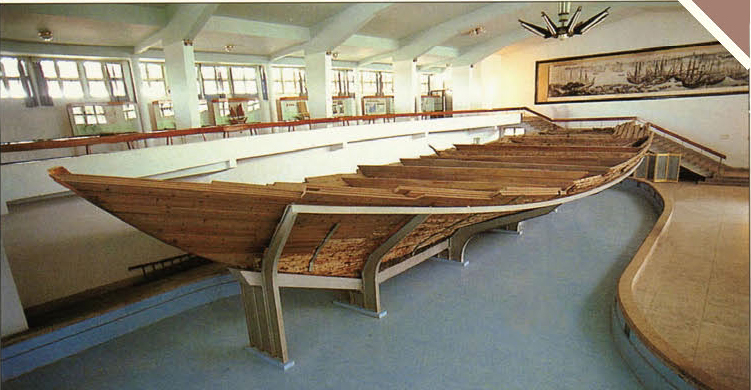 帆的出现,外国可能比中国早得多。埃及方帆船出现的年代可推溯到公元前3100年。中国船舶风帆出现的年代,迄今虽尚无定论,但多数学者认为在殷商时代就出现了风帆。其依据是甲骨文中的“凡”字即“帆”,到商代,人们已在船上装置了帆,利用风力来行船。我们知道商代就能织出世界最早的提花织物,那么就不会缺乏用来做帆的织物。