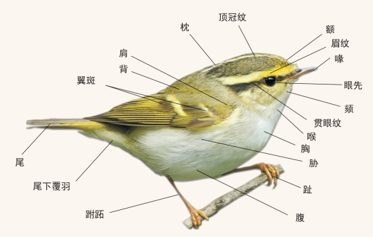 在野外观鸟时,经常会描述鸟类的外部形态。首先需要留意鸟类的体形,并将其与身边最熟悉的鸟类进行比较,比如说比麻雀稍大或稍小。其次需要观察鸟类是否有某些特别的外部形态,比如说脚很长或尾分叉等。通过这样的描述就可以将鸟类鉴定到特定的类群,有时候也能够鉴定到种。对一些较难识别的鸟类,需要对某些细微的特征进行描述,比如说是否具有眉纹以及眉纹的颜色是什么。在观鸟之前,熟悉鸟类外部形态的名称,对正确识别鸟类尤为重要。