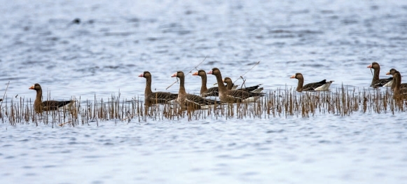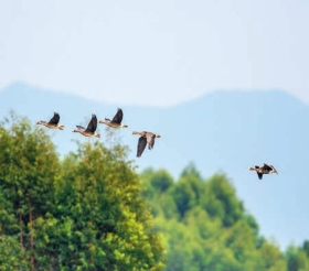 相似种:小白额雁。体形较小,喙、颈较短,喙周围的白斑延伸至额部。