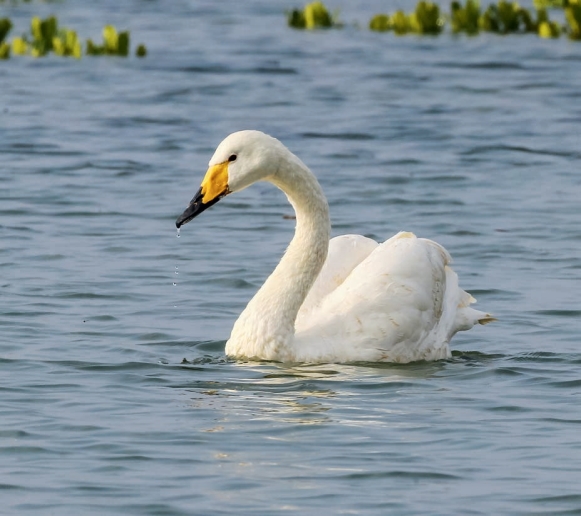 相似种:小天鹅。体形较小,喙基部黄色面积较小,不超过鼻孔。