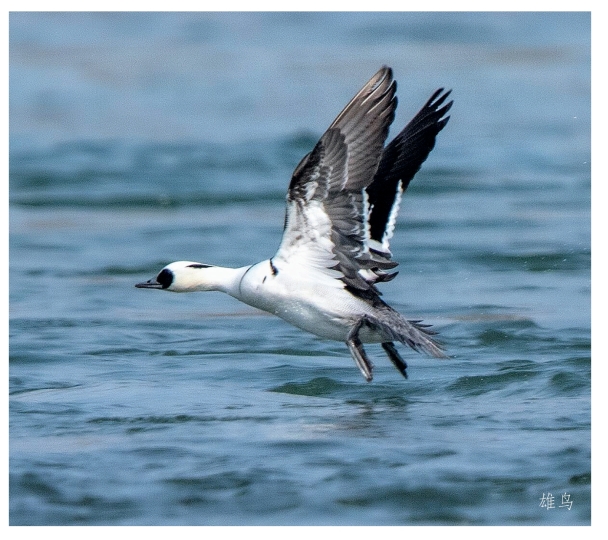 鉴别特征:体长约50 cm,体形较大的鸭类。喙前端呈钩状。雄鸟体羽几乎由黑色和白色组成。雌鸟自额至后颈栗色,喉部和颊部白色,身体其余部位为褐色。