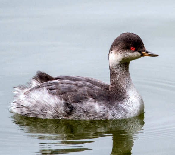 相似种:赤颈䴙䴘。体形较大,下喙相对平,眼黑褐色。