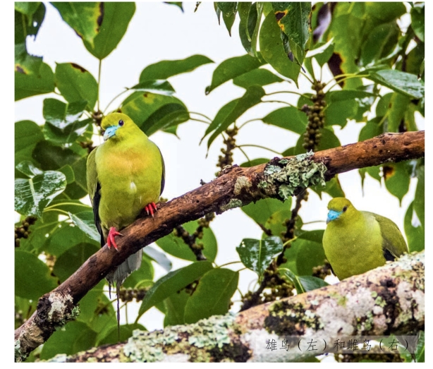 行为:常成对或成小群活动,在树冠层觅食植物果实。