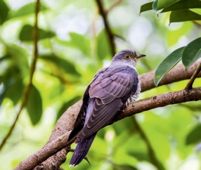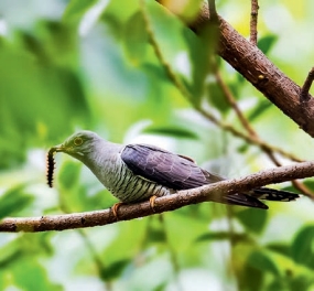 相似种:四声杜鹃。腹部黑色横斑较粗,叫声似“光—棍—好—苦”,四声一度。
