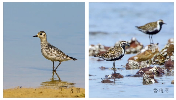 备注:广西在北部湾地区记录有美洲金鸻Pluvialis dominica,为迷鸟(周放等,2011),但郑光美(2017)并未将美洲金鸻列入中国鸟类名录,因此本书暂不收录美洲金鸻。美洲金鸻体形较金鸻稍大,胸侧白斑较大,需在今后进行专门的监测,以确认其在广西的分布。