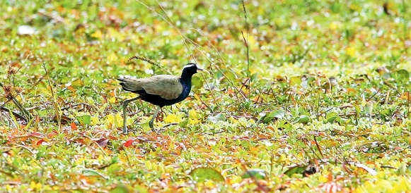 鉴别特征:体长约28 cm,体形中等的涉禽。头颈部黑色,具白色眉纹和红色喙基,背部和翼上覆羽褐色。