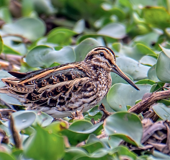 鉴别特征:体长约18 cm,小型鹬类。喙粗短,呈黄色,喙端黑色。头顶黑褐色,中心无纵纹。上体具绿色和紫色光泽。飞行时尾色深而无棕色横斑,尾呈楔形。