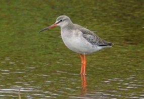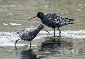 鉴别特征:体长约30 cm,中型鹬类。喙细、长、直,尖端处微下勾,喙下基红色。过眼线明显,飞行时次级飞羽无白色翼后缘。冬羽上体灰色深,繁殖羽通体黑色具白色斑点。脚橙红色。