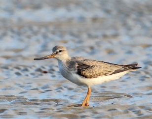 鉴别特征:体长约23 cm,体形中等的灰白两色鹬类。喙黑色,长且上翘,喙基黄色。脚短,橘黄色,半截眉纹浅白色。飞行时翼上初级飞羽黑色,次级飞羽白色内缘明显。繁殖羽肩羽黑色。