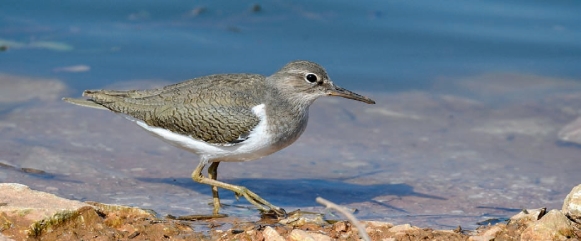 鉴别特征:体长约20 cm,中型鹬类。体形低矮,上体褐色,下体白色,胸侧具白色斑块。喙短直,灰色。翼不及尾长,具浅黑色的过眼线,飞行时翼上具白色斑纹。脚短,浅橄榄绿色。