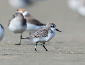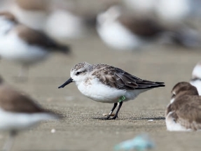 行为:常混于小型鸻鹬类鸟群中栖息、觅食。