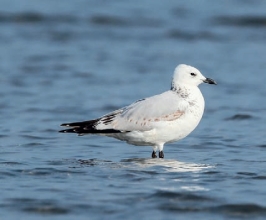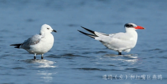 鉴别特征:体长约45 cm,体形中等的鸥类。喙红色,体羽多白色。繁殖期头黑色。非繁殖期头白色,耳部具深色的斑点,头顶和颈背具深色的纵纹。