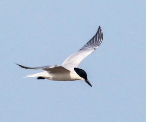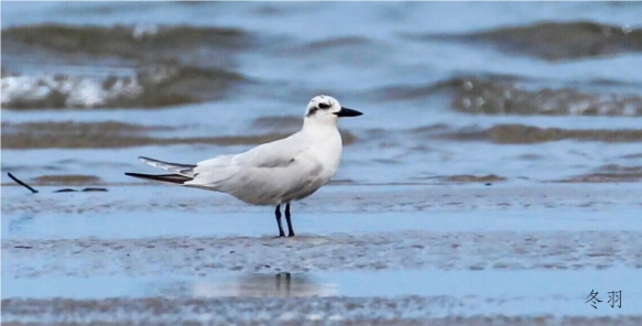 鉴别特征:体长约39 cm,体形中等的浅色燕鸥。黑色的喙较为突出,尾狭且尖叉。繁殖期头顶全黑色,其余为灰色或白色。非繁殖期头白色,颈背具灰色杂斑,眼具黑色斑块。幼鸟头顶和上体多具褐色杂斑。