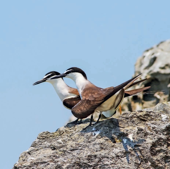 行为:成群或与其他燕鸥混群活动,主要以鱼类为食。