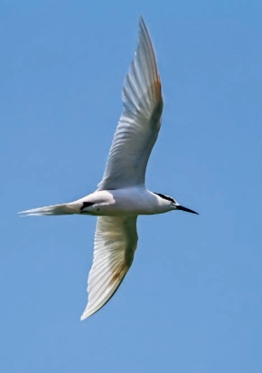 鉴别特征:体长约31 cm,体形略小的白色燕鸥。枕部黑色,其余部分近白色或灰色。幼鸟头顶具褐色杂斑,颈背具近黑色斑。