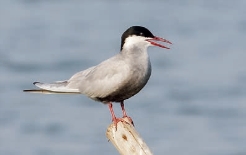 鉴别特征:体长约25 cm,体形略小的浅色燕鸥。繁殖期头顶黑色,颏、喉和颊部白色,其余部位偏灰色。非繁殖期额白色,头顶具细纹,顶后和颈背黑色,下体白色。幼鸟多具褐色杂斑。