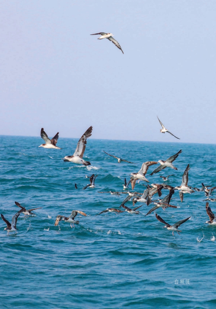 鉴别特征:体长约70 cm。喙直,繁殖羽颏、喉和前颈黑色,但冬羽不明显。冬羽上体黑色,头顶和后颈黑灰色,下体白色。