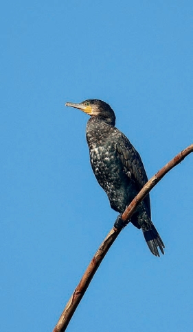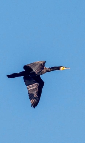 相似种:海鸬鹚。体形稍小,体羽黑色,光泽较明显,颊部和喉部无白色。
