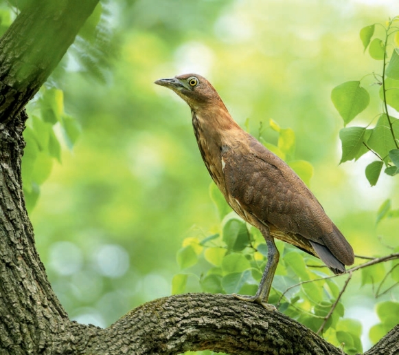 鉴别特征:体长约47 cm,体形稍小的褐色鹭鸟。上体深褐色,具不明显的蠹斑。下体皮黄色,具明显的褐色纵纹。