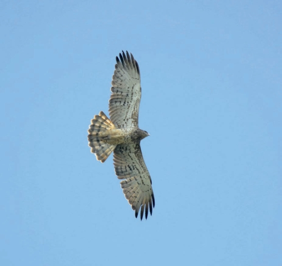 鉴别特征:体长约65 cm。头短圆,上体灰褐色,颌、颈和上胸浅棕色。下体白色,腹部和尾下均具较明显的横斑。