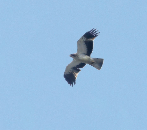 鉴别特征:体长约50 cm,中型猛禽。上体褐色,下体棕色或浅皮黄色。飞行时肩部具明显白斑,翼指6枚。