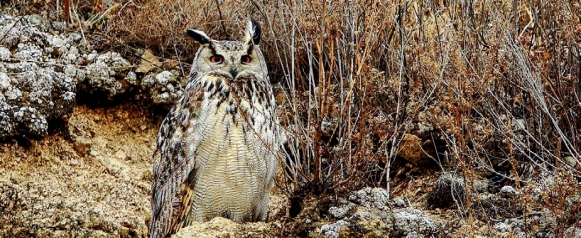 鉴别特征:体长约72 cm,大型黑褐色鸮类。耳羽簇长,通体黄褐色,喉白色,上体多黑色斑点,下体具黑色纵纹。