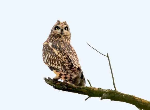 相似种:长耳鸮。具明显的长耳羽簇,腹部羽干纵纹分枝形成横斑。