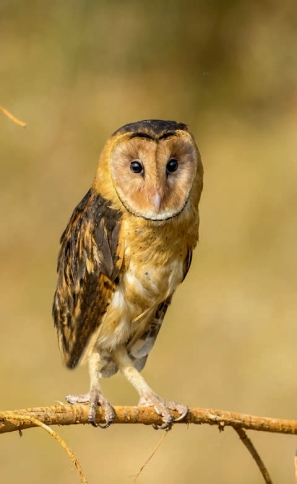 相似种:仓鸮。上体棕黄色,下体白色,眼先无黑斑。