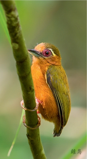 鉴别特征:体长约9 cm,体形纤小的啄木鸟。翅膀和头顶橄榄色,背部至尾部为棕色到橄榄色的渐变,下体棕色。雄鸟前额黄色,雌鸟前额棕色。脚仅3趾。
