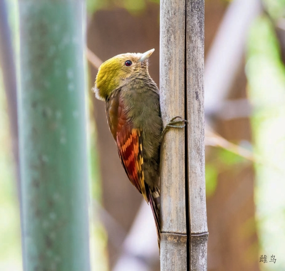 行为:单独或成对活动,在竹丛内活动,敲击竹竿时发出响亮的啄击声。