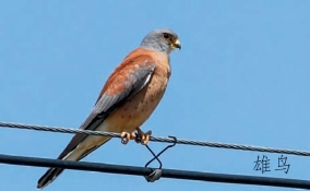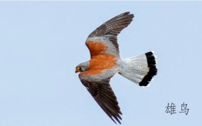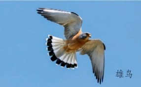 鉴别特征:体长约30 cm,体形相对较小的猛禽。雄鸟头和尾部蓝灰色,背部和肩部棕黄色。雌鸟整体为淡栗色,具黑色的横斑。尾具黑色次端斑和白色端斑,爪浅黄白色。