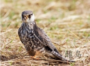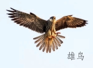 鉴别特征:体长约28 cm,小型猛禽。雄鸟上体大多为石板黑色,腿、腹部和臀棕色。雌鸟上体具鳞状斑纹,颊部白色,胸腹部具黑色横斑,臀部棕色较浅。