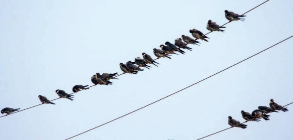 行为:迁徙期间常成小群站立于电线上,以大型昆虫为食。