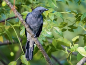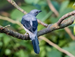 鉴别特征:体长约23 cm。全身大部分为浅灰色,两翼亮黑色,尾羽末端白色。雌鸟全身羽色略浅。intermedia亚种背部灰色较浅,尾下覆羽偏白。