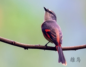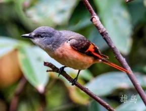 鉴别特征:体长约20 cm,体形略小的山椒鸟。头顶及上背部为灰色,颏部及喉部白色。雄鸟头部及下体粉红色,雌鸟腹部为浅黄色。
