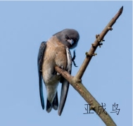 鉴别特征:体长约18 cm。体羽多灰色,喙厚且呈蓝灰色,翼较黑,腰部为白色。与燕子相似,但飞行时两翼宽且呈三角形,尾平。