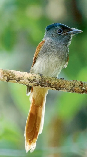 鉴别特征:体形小巧,但加上尾羽会很长。体羽多为红褐色,头顶偏灰色,羽冠较弱。很少有白色型雄鸟。