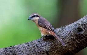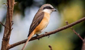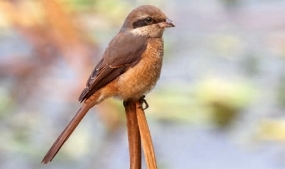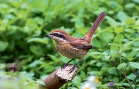 相似种:牛头伯劳。头大而圆,雄鸟具白色翼斑,雌鸟及亚成鸟胸腹部为横纹。