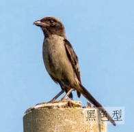 鉴别特征:体长约25 cm,体形略大而尾长的棕色、黑色及白色伯劳。额部、眼纹、两翼及尾羽均为黑色,翼具一白色斑,头顶及颈背灰色或灰黑色,背部、腰部及体侧均为红褐色。有些个体黑化严重,体色较深。