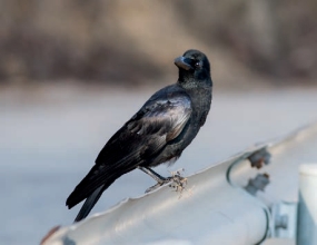 鉴别特征:体长约52 cm,体形较大的鸦类。全身漆黑,并略带显眼的金属光泽。喙粗厚,额弓突起明显。