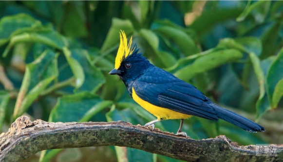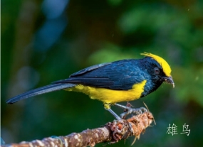 鉴别特征:体长约20 cm的大型山雀。具明显的鲜黄色冠羽和胸腹部。雄鸟上背及喉部亮黑色,雌鸟多为橄榄色。