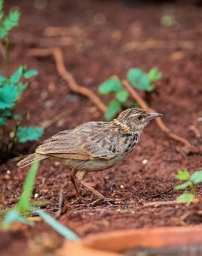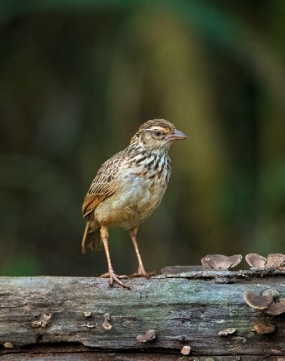 鉴别特征:体长约14 cm。上体暗棕褐色并具黑褐色纵纹,喉部和胸部具黑褐色羽轴纹,褐色的翼具棕色羽缘,眉纹和眼先棕白色,颊部和耳覆羽棕色并具褐色端斑,暗褐色短尾,最外侧尾羽为皮黄白色。