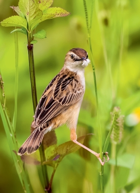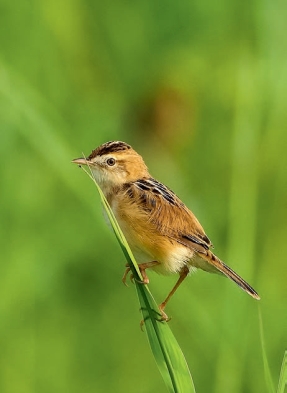 相似种:金头扇尾莺。眉纹淡皮黄色,与颈背及颈侧同色。
