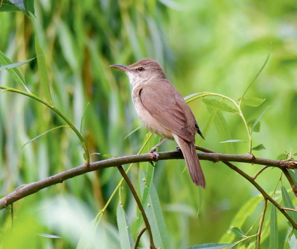 鉴别特征:体长约19 cm的大型莺类。上体棕褐色,眉纹淡皮黄色,眉纹至眼后不太清晰,腹部偏白色,两胁和尾下覆羽棕色。