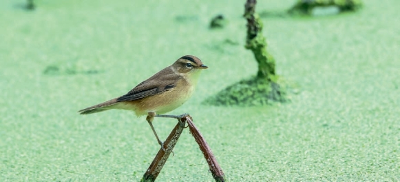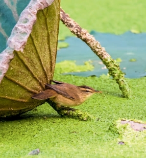 鉴别特征:体长约 13 cm的小型莺类。上体棕褐色,具清晰的皮黄色眉纹和黑色侧冠纹,下体白色,两胁淡棕色。