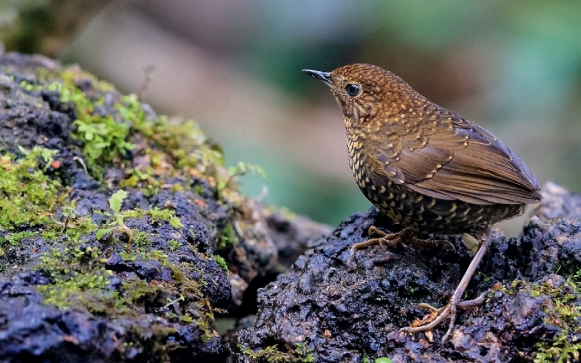 鉴别特征:体长约10 cm,体形较小的鹛类,几乎看不到尾。体羽多为褐色,羽毛尖端均具皮黄色点。上体大部分鳞状斑不太明显,但下体的鳞状斑较为显著。